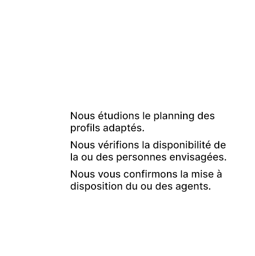 Nous portons attention à l’échange avec nos clients partenaires pour pouvoir assurer des missions supplémentaires si nécessaire au cas par cas en fonction des réalités du dispositif.